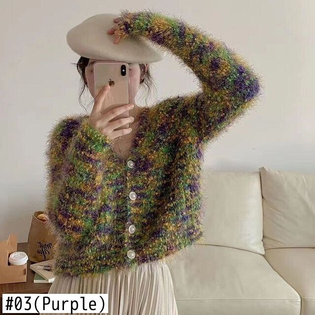 Vネックショートキャンディーレインボーセーターレディースロングスリーブトップクロップドカーディガンニットジャケットスリムストライプシャツ 長袖 asa49676802439