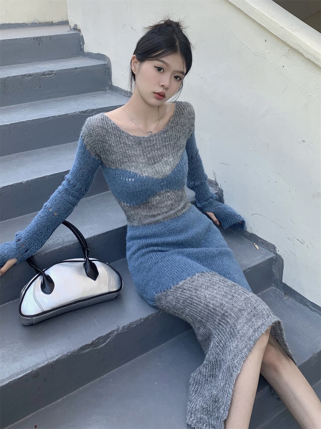 長袖ニットローブ不規則なマーメイドドレス女性春ボディコンフリル Vestidos ロングヒップ スプリング 春物 asa99084666185