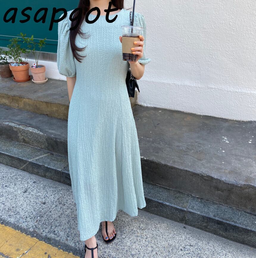 気質シックな固体レトロ O ネックランタン半袖プリーツドレス女性ロングルーズ Vestido Feminino ショート ハーフスリーブ Oネック ソリッドカラー asa14017499398