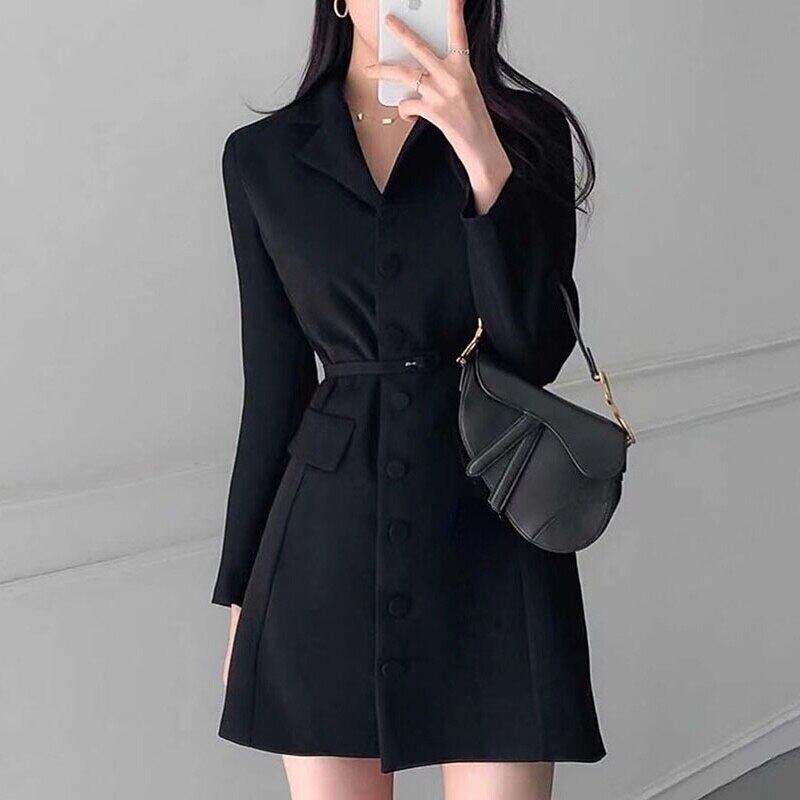 ノッチ付きスリムシングルブレストウエストロングスリーブショートホワイトスーツドレス女性OL Vestido Feminino気質ベルト 長袖 ハーネス asa71151007282