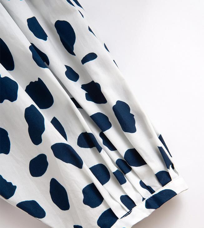 スタンドカラーブルーフローラルシャツ女性デモーダランタンスリーブルーズポルカドットブラウストップスシャツ 花柄 asa88297695859