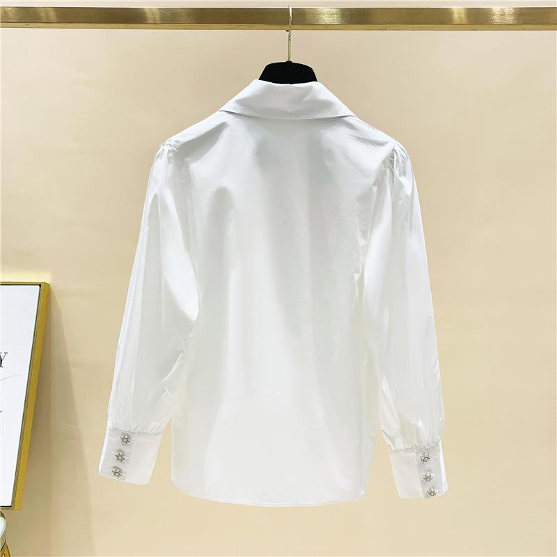 デモーダビーズ人形の襟白シャツ女性ルーズトップス春オフィスレディブラウスシャツ野生 ホワイト スプリング 春物 会社 学校 通勤や通学にも asa12564389073