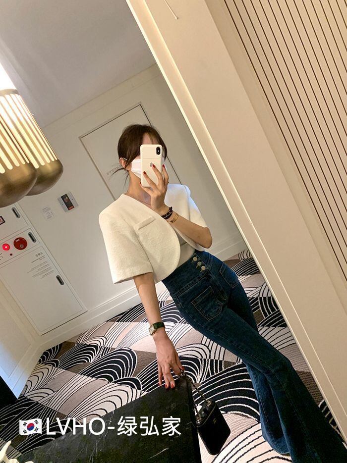 ツイード半袖白ブレザーショートコート夏シック気質シャツレディオフィスカーディガン ホワイト ハーフスリーブ サマー 夏物 会社 学校 通勤や通学にも asa47558846175
