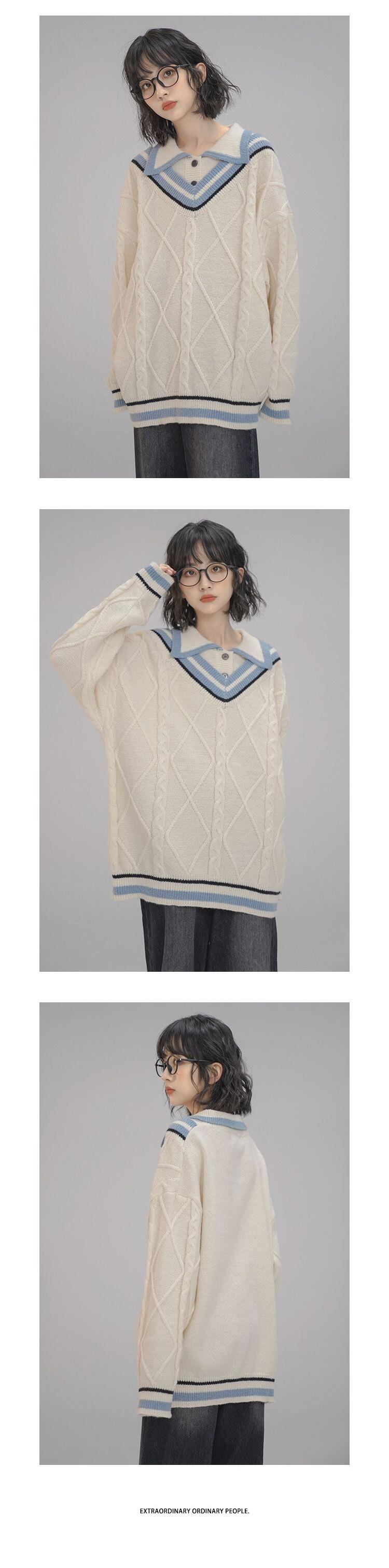 プレッピースタイルフェイクツーピース黒ツイストセーター女性プルオーバールース生き抜くトップス Sueters ジャンパージャージーストライプセーター ブラック asa51482759749