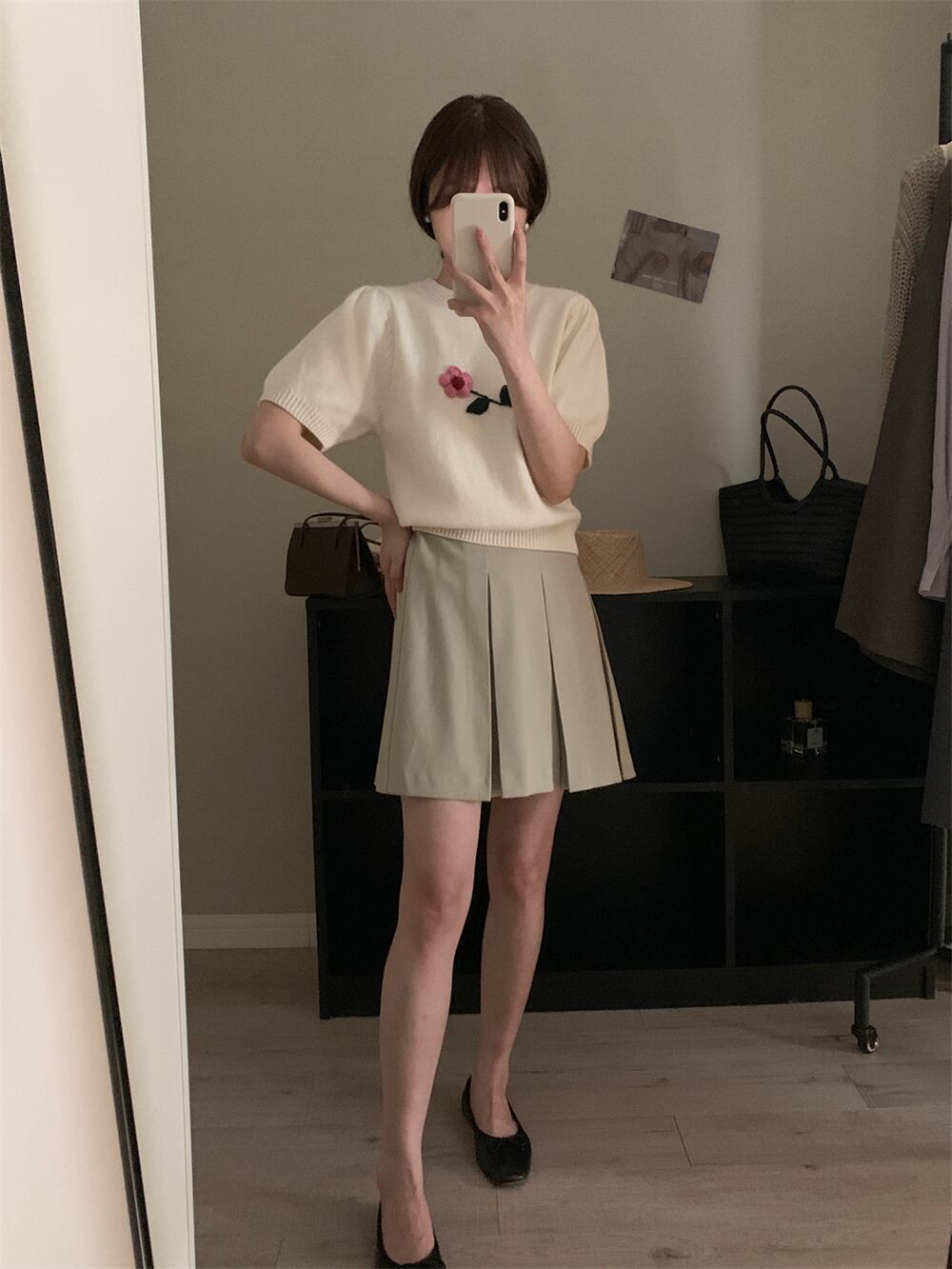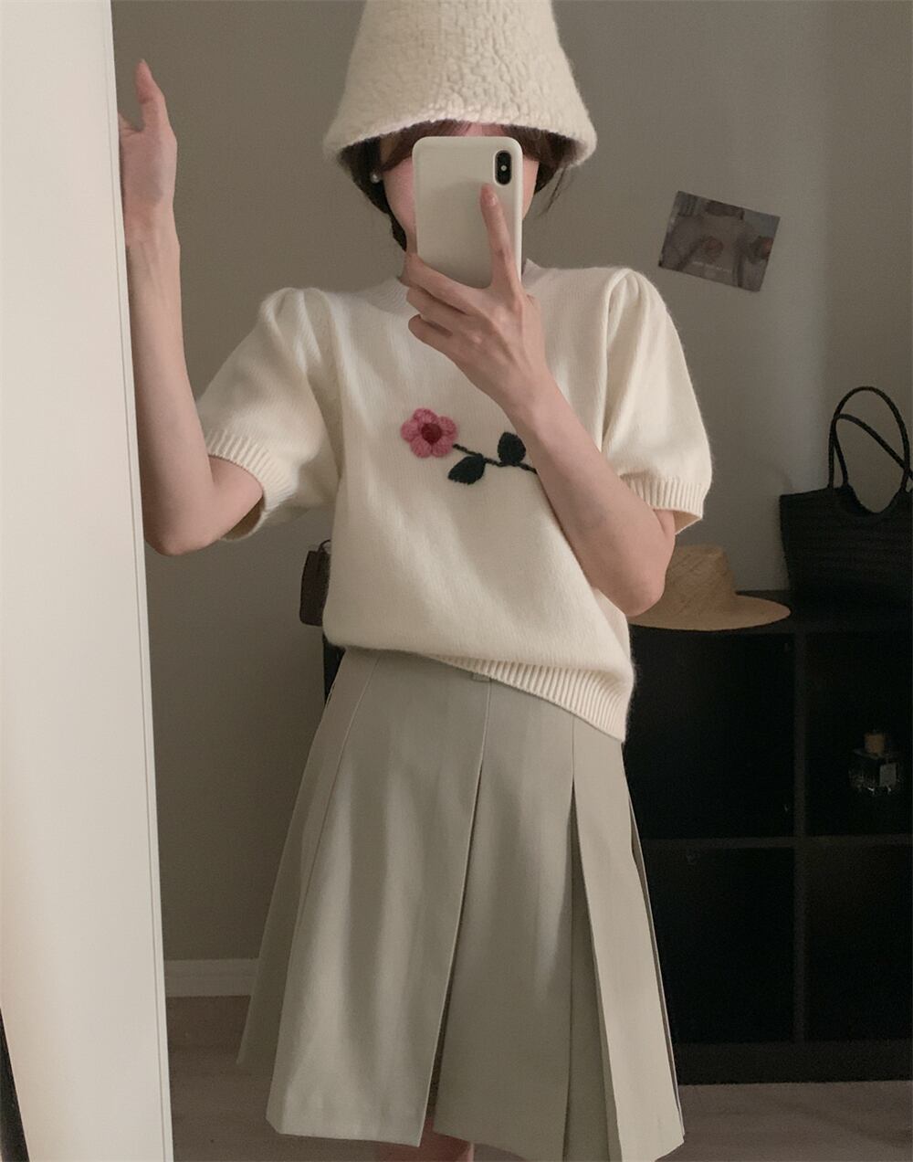 スウィート O ネックルーズプルオーバー 3D フラワー半袖ニットセーター女性ジャージーセーター春トップス ショート ハーフスリーブ 大人ガーリー キュート カジュアル スプリング 春物 Oネック フラワーデザイン asa41113945389