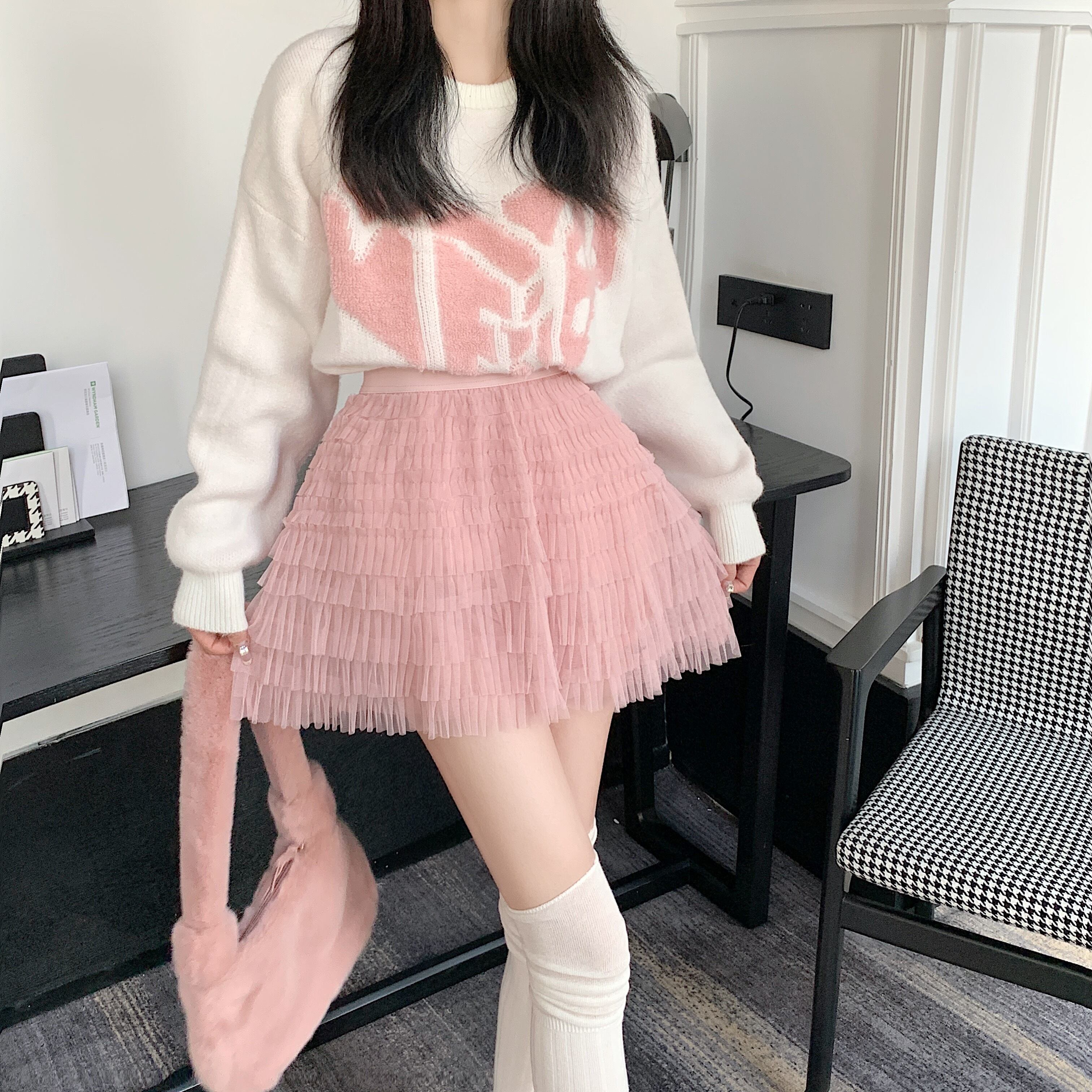 レイヤーガーゼウエストピンクケーキスカートミニスリムウエストセクシーなファルダスフリル黒チュールスカートレディ春女性 ブラック スプリング 春物 asa44426887236