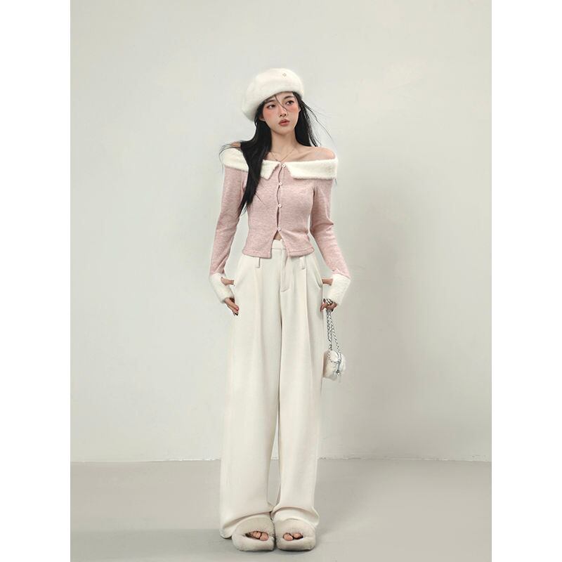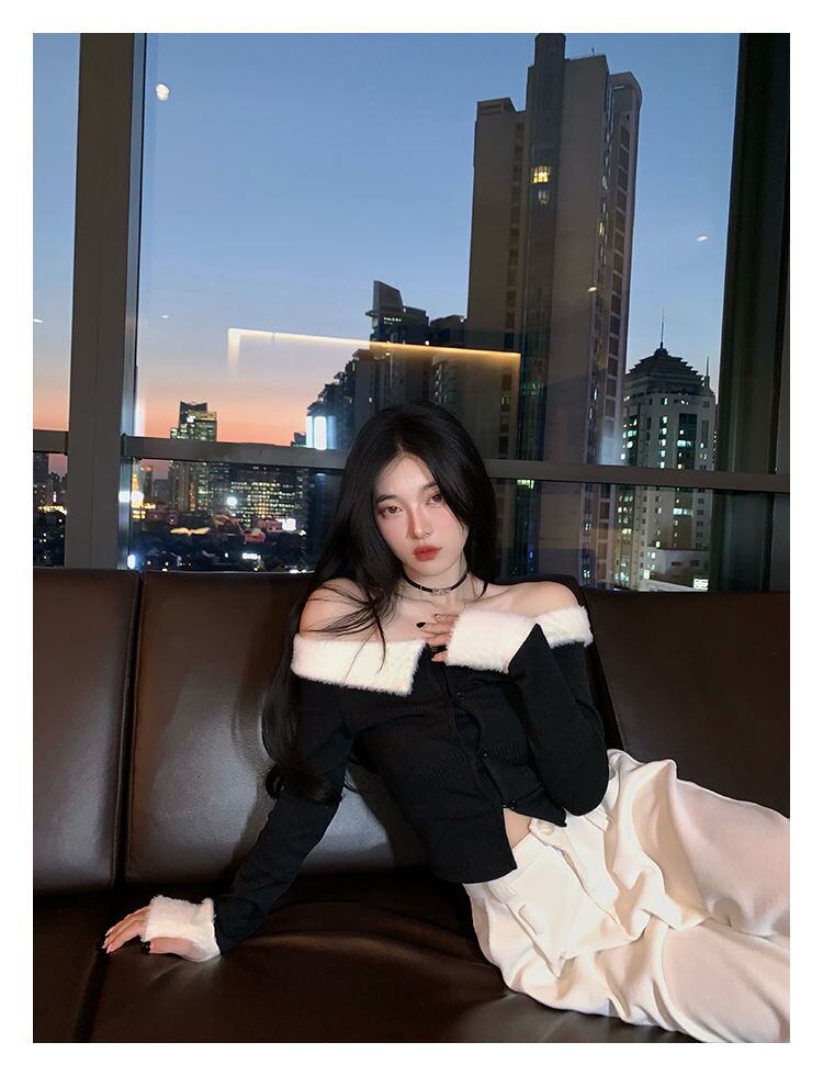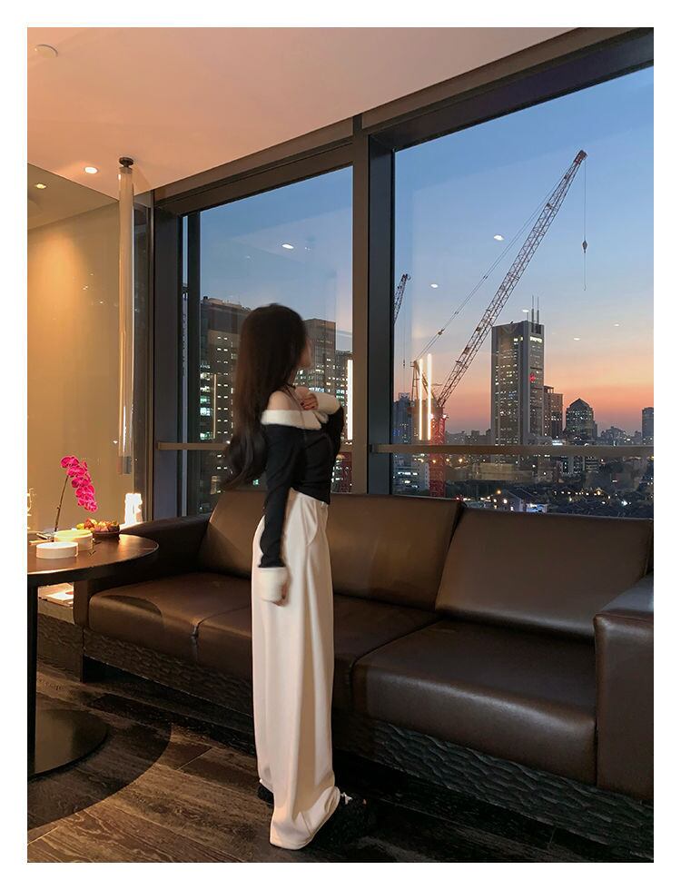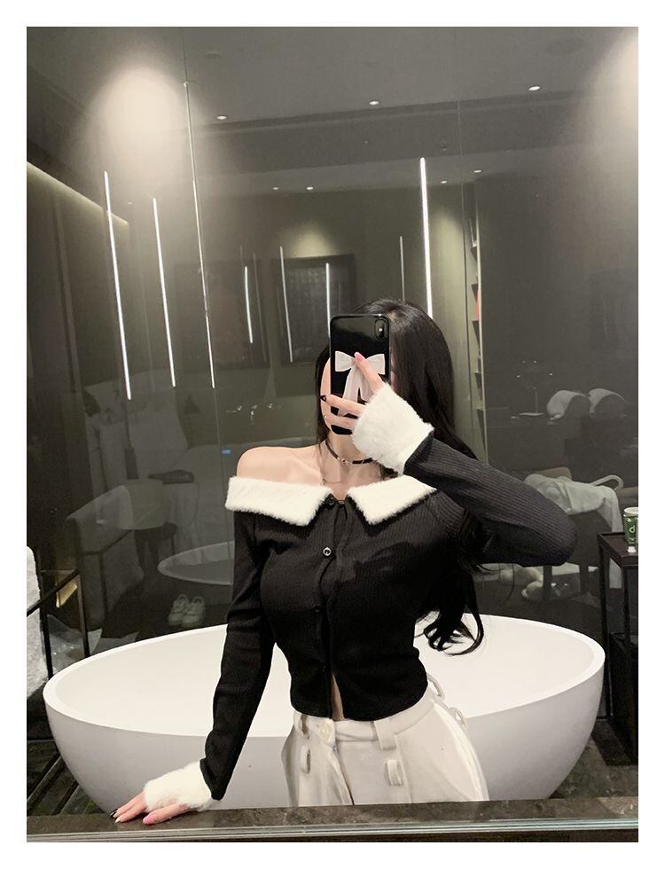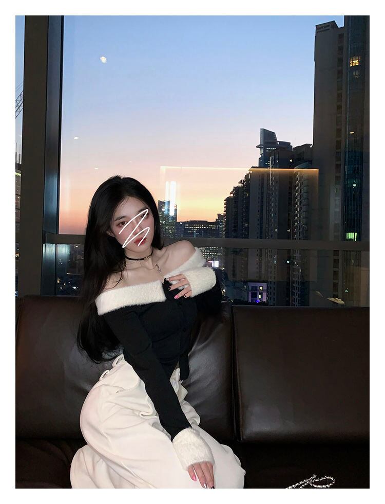 スラッシュオフショルダーセクシーなピンククロップトップスシングルブレスト Tシャツスリム黒 Tシャツニット服シャツ女性 Tシャツ ブラック asa28915960103
