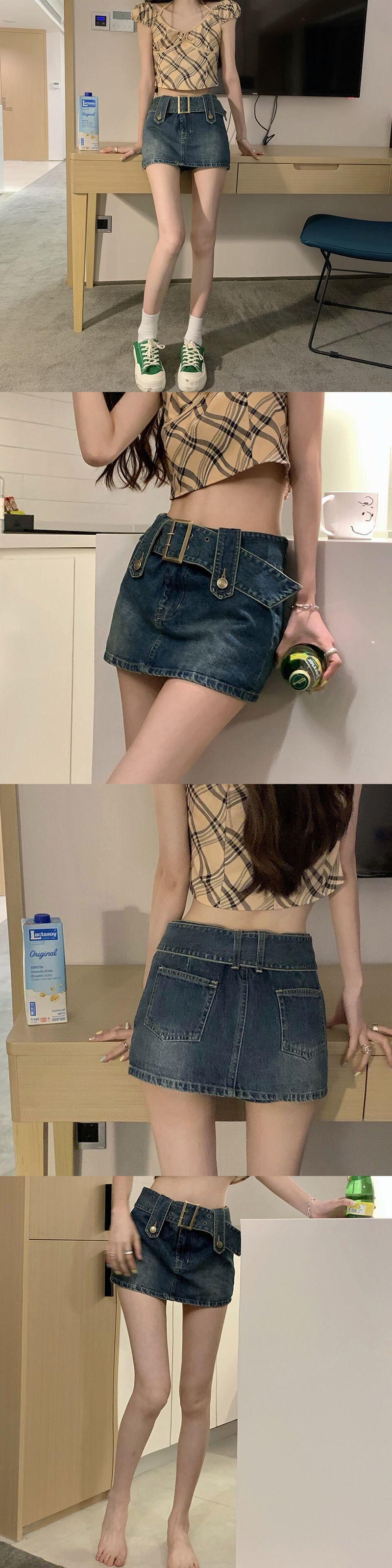 ウエストラップヒップミニジーンズスカート Autunm セクシーなベルトペチコート段段 Faldas モーダ春デニムスカートの女性の野生 スプリング 春物 ハーネス asa42791443855