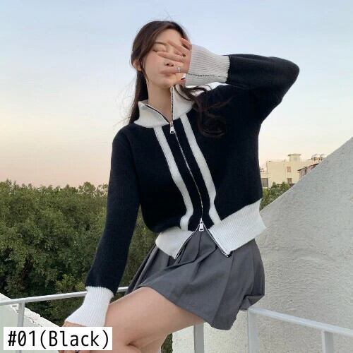 クロップドグレーダブルジップニットカーディガン生き抜くコントラストタートルネックセータージャケットプル女性服セーターニット asa545499535