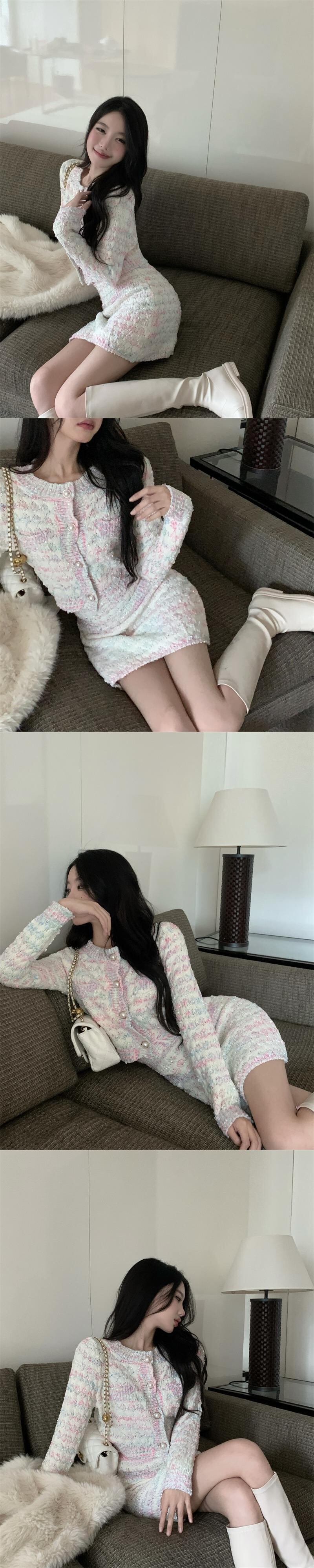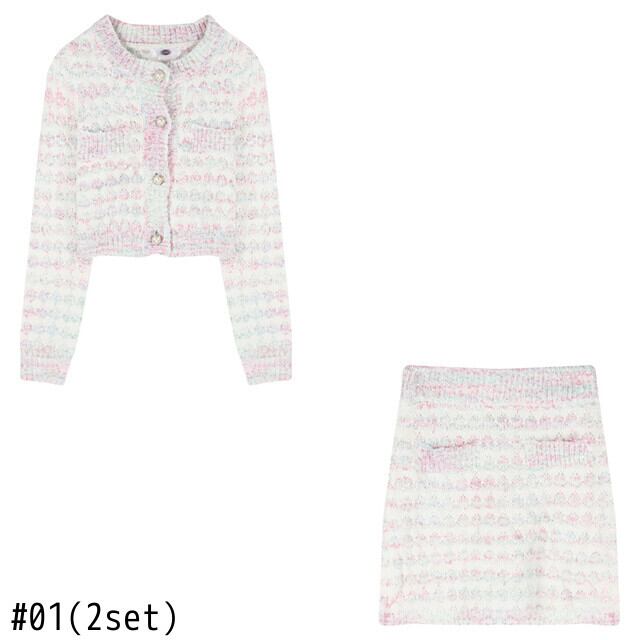 スウィート クロップド レインボー カーディガン ツイード ジャケット シック フォール ラップ ヒップ スカート セット 2 ピース セット 大人ガーリー キュート カジュアル asa53093933706