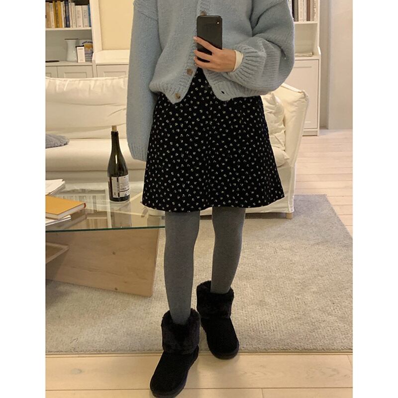 ウエスト A ライン ショート ブラック花柄コーデュロイ スカート女性スリム ペチコート ファルダス春プリント スプリング 春物 Aライン asa39089567159