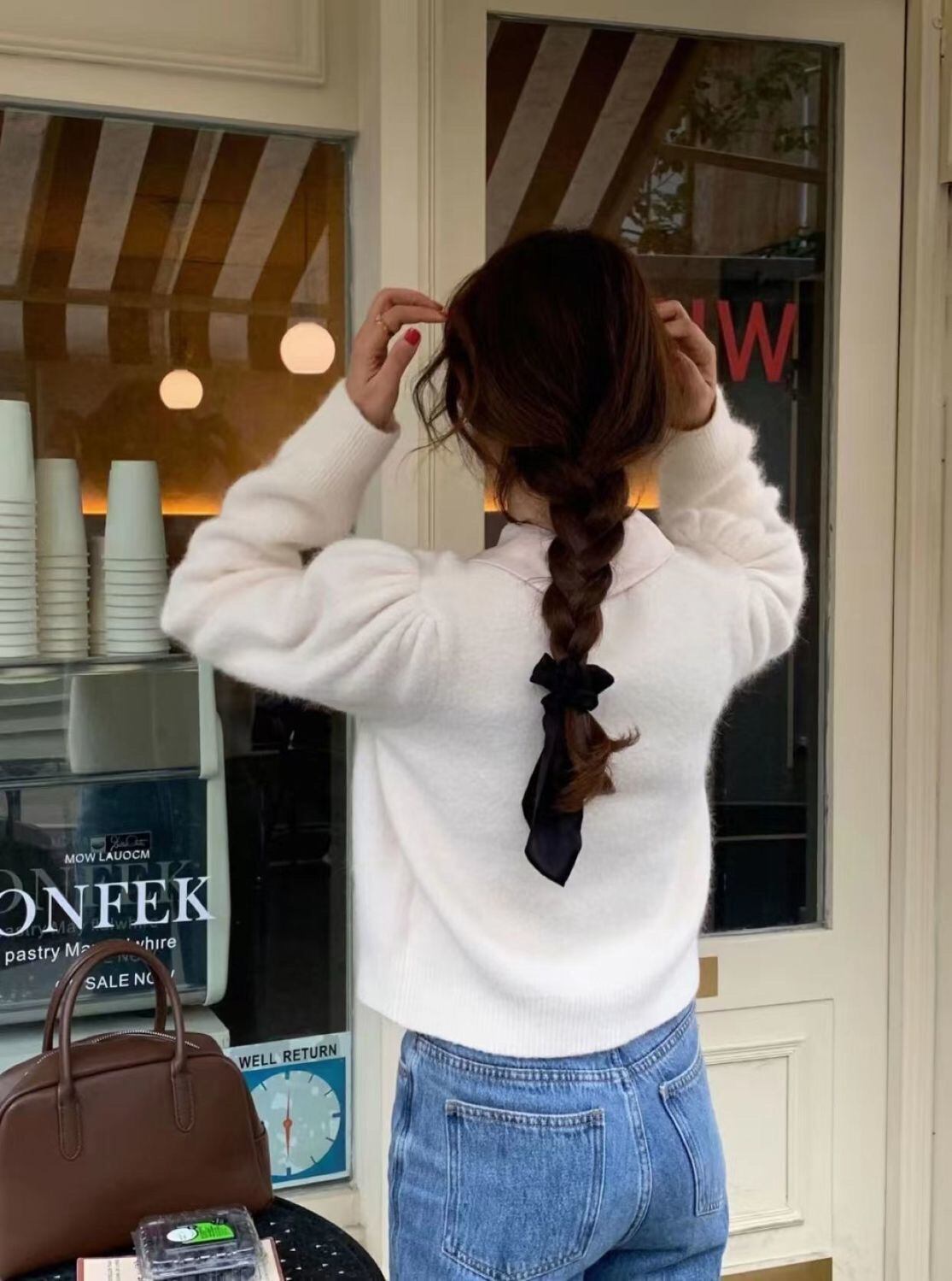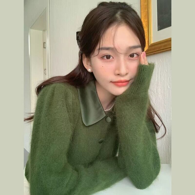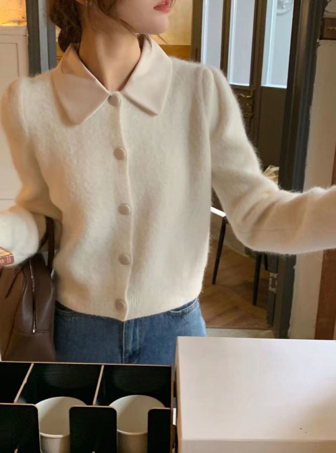 セーターシックな人形の襟カーディガン女性秋甘いニットジャケットセータークロップドプルニットカーディガン 大人ガーリー スウィート キュート カジュアル オータム 秋物 asa60002900663