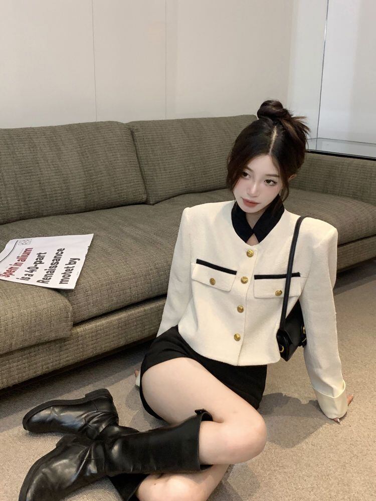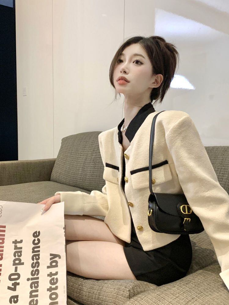 スモール フレグランス テーラード コート ショート オータム ウール ジャケット スリム ブレザー チャケータ カーディガン フレンチ レッド 秋物 asa61430102031