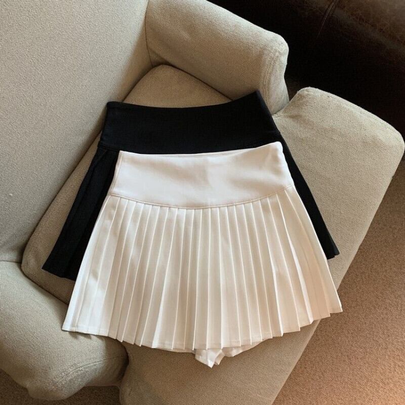 ショート a ライン ウエスト ホワイト プリーツ スカート女性の セクシー な faldas ペチコート スーツ スリム野生春黒ケーキ スカート ショーツ ブラック スプリング 春物 ブルマー Aライン asa41338289958
