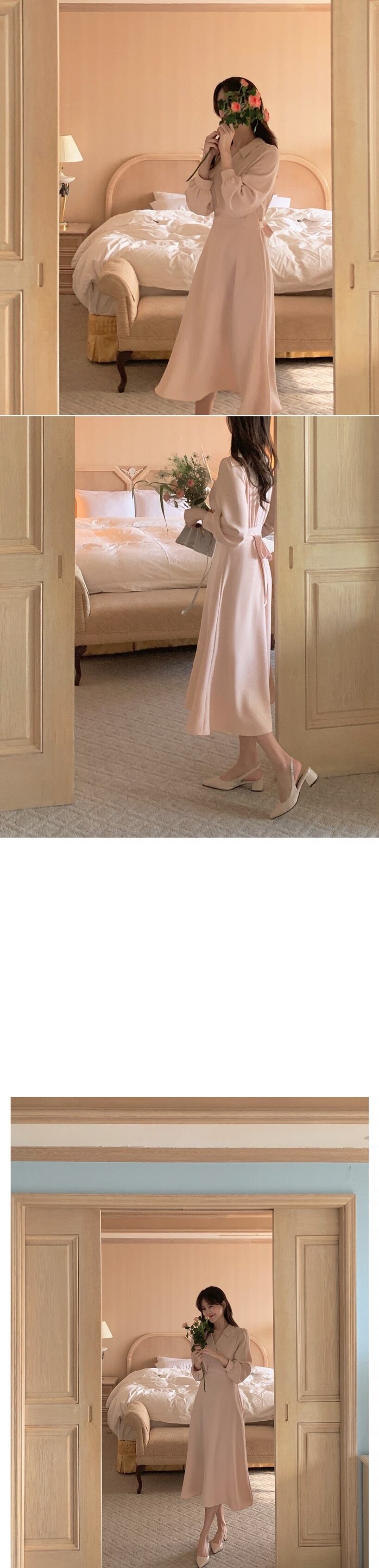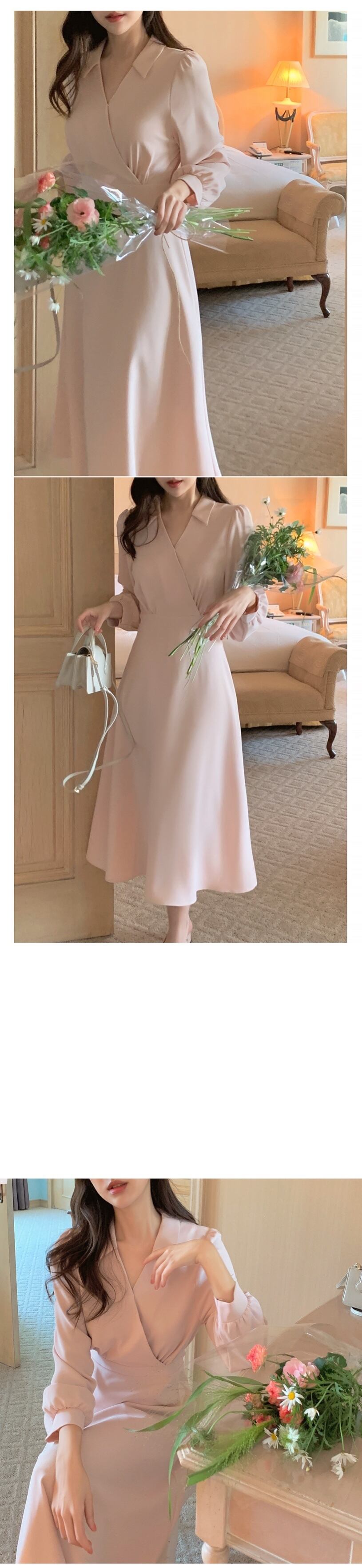 V ネックレースアップ春気質 A ラインピンクドレス Vestidos デボディコンロングドレス女性 OL ミニマリズム スプリング 春物 Aライン asa88157130974