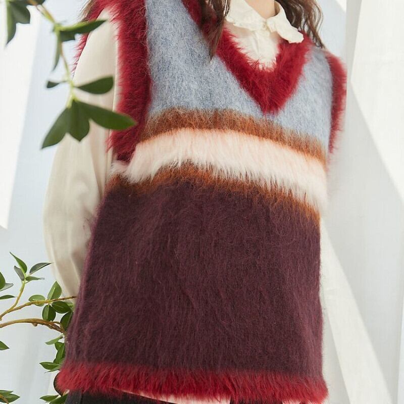 コントラスト モヘア セーター Chalecos V ネック ストライプ ニット ベスト トップス 春 Y2k 服 スプリング 春物 Vネック asa69081579270