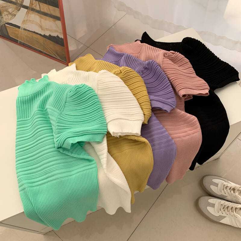 シャツ女性スリムパフ半袖クロップトップス無地ハーフカラー Tシャツブラウス白 Tシャツニット Tシャツ ショート ホワイト ハーフスリーブ ソリッドカラー asa31074809471
