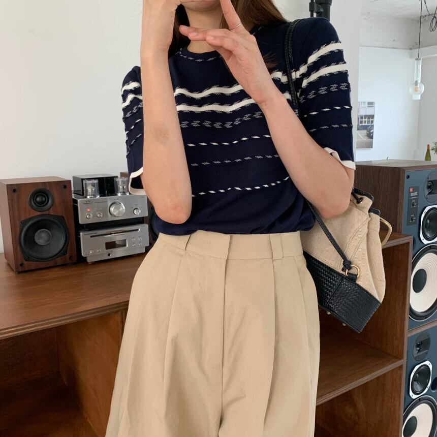 アイス半袖 Tシャツ服グラフィック Tシャツ黒のストライプのブラウス女性 Tシャツ原宿クロップトップスシャツ ショート ブラック ハーフスリーブ かわいい シルク asa68927741261