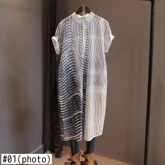 ルーズ半袖シャツドレス女性プリントローブ Vestidos デロングストライプドレスワイルド ショート ハーフスリーブ asa42511605549