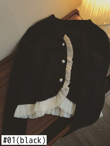 女性のセーター秋優しいパール ボタン フリル パッチワーク ピンク クロップド カーディガン V 長袖メッシュ ニット コート ロング オータム 秋物 真珠 asa75325996745