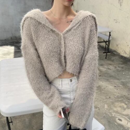 クロップセーラーカラーセーター女性スリムレトロプルソリッドカラーカーディガン生き抜くニットコートブラックホワイト asa91268991006
