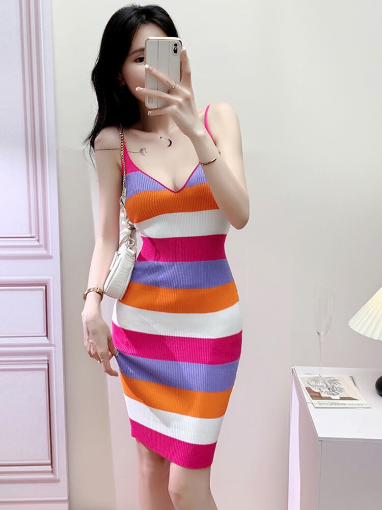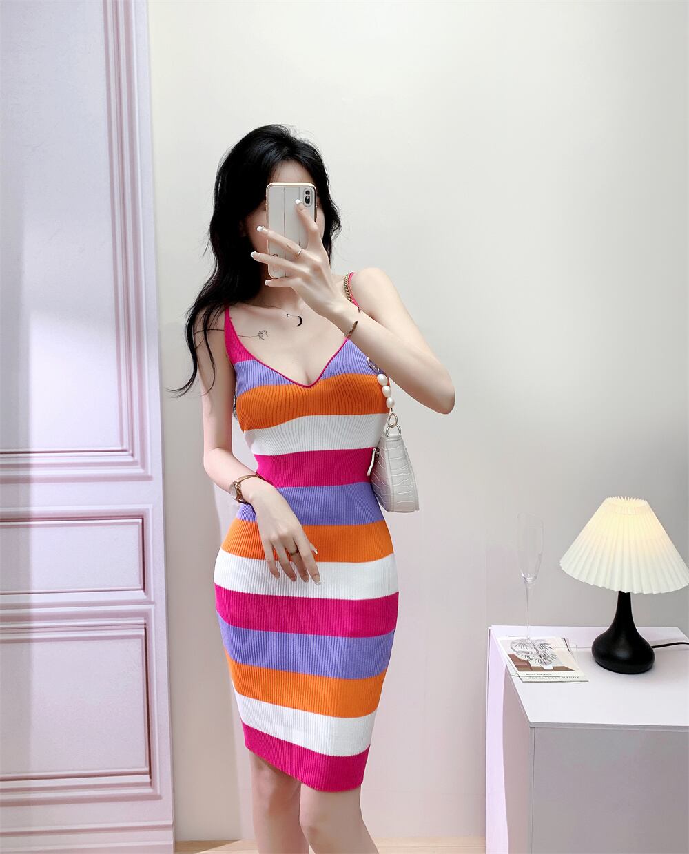 セクシーなストラップストライプドレス女性スリムニットボディコンドレス Vestidos ラップヒップニット春夏ドレス スプリング 春物 サマー 夏物 asa98387771152