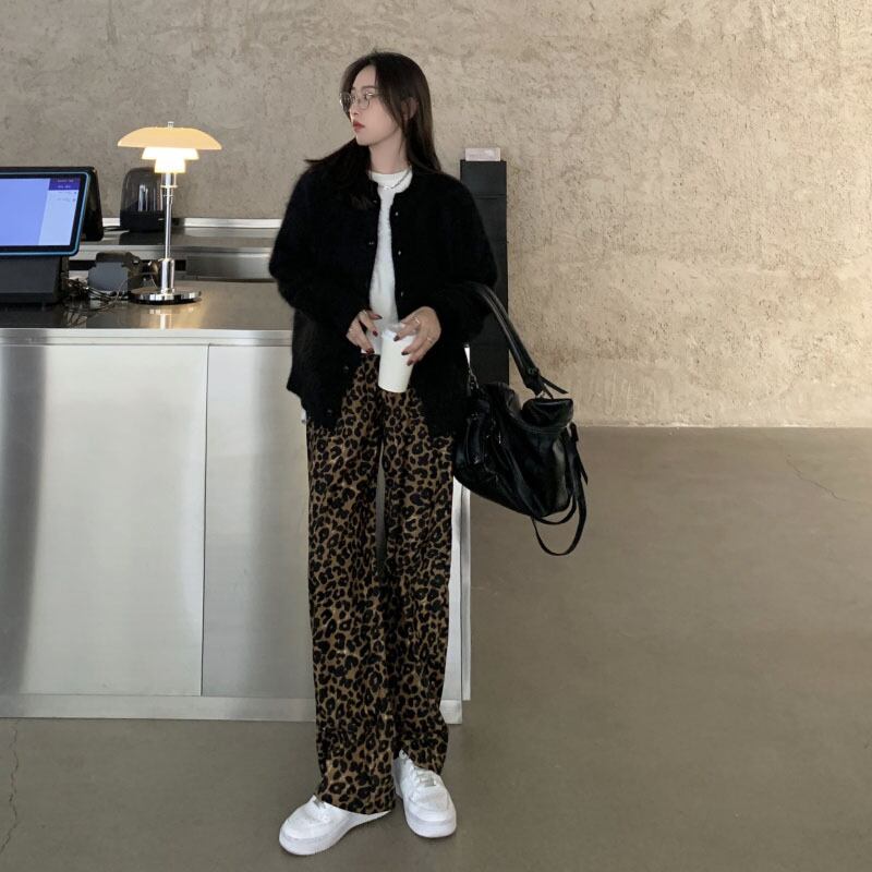 ルーズワイドレッグヒョウのズボン女性 pantalones 春貨物 Y2k スウェットパンツ女性パンツプリント スプリング 春物 ワイドパンツ asa58767504626
