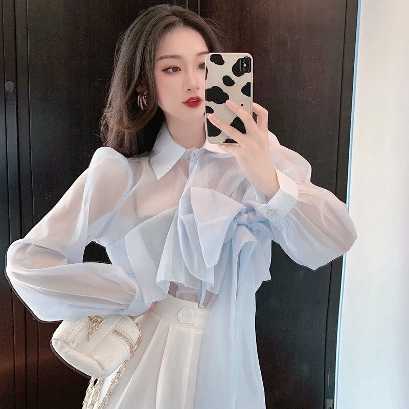 ルーズホワイトテーラードパンツワイドレッグパンツセットスーツボウブルー透明シャツブラウスオフィスレディシャツ レッド リボン ワイドパンツ 会社 学校 通勤や通学にも asa80219270175