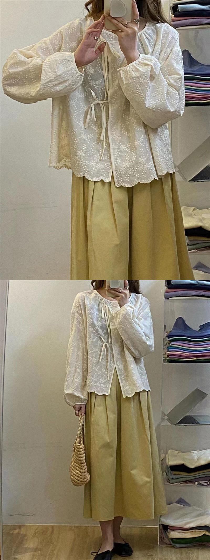 刺繍レースかぎ針編み不規則なシャツ女性優しいレースアップバルーンスリーブブラウスパフトップ レッド asa86972161622