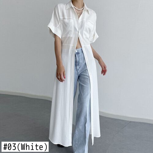ラペルダブルポケットフライスリーブホワイトシャツドレスレディーススプリットVestidosデワイルドミディショートスリーブワイルド 半袖 ハーフスリーブ asa40408524389