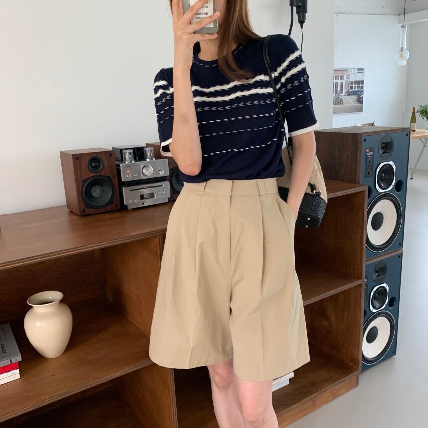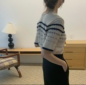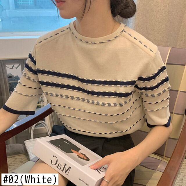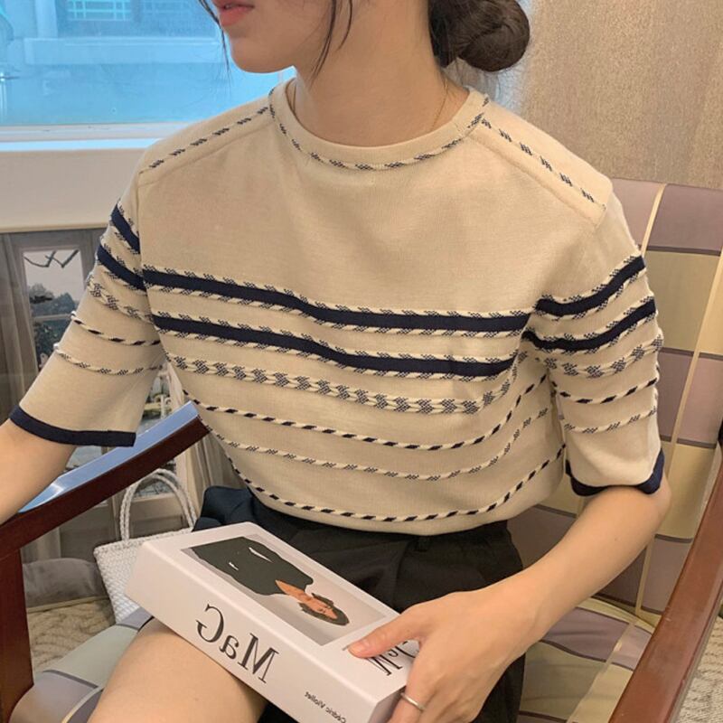 コントラスト半袖ストライプシャツ女性春ジャンパークロップトップ黒ニットセーターワイルドプルニット ショート ブラック ハーフスリーブ スプリング 春物 asa87968473143