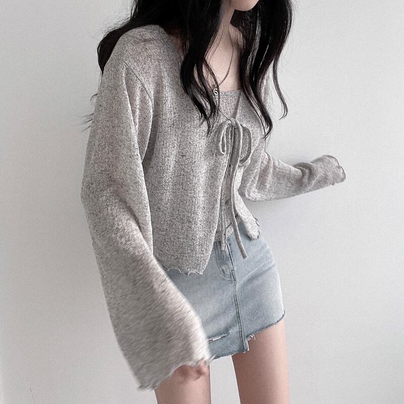 キャミソールタンクトップ秋グレー Tシャツ女性ワイルドシン包帯太陽保護シャツ透明トップス asa64171338250