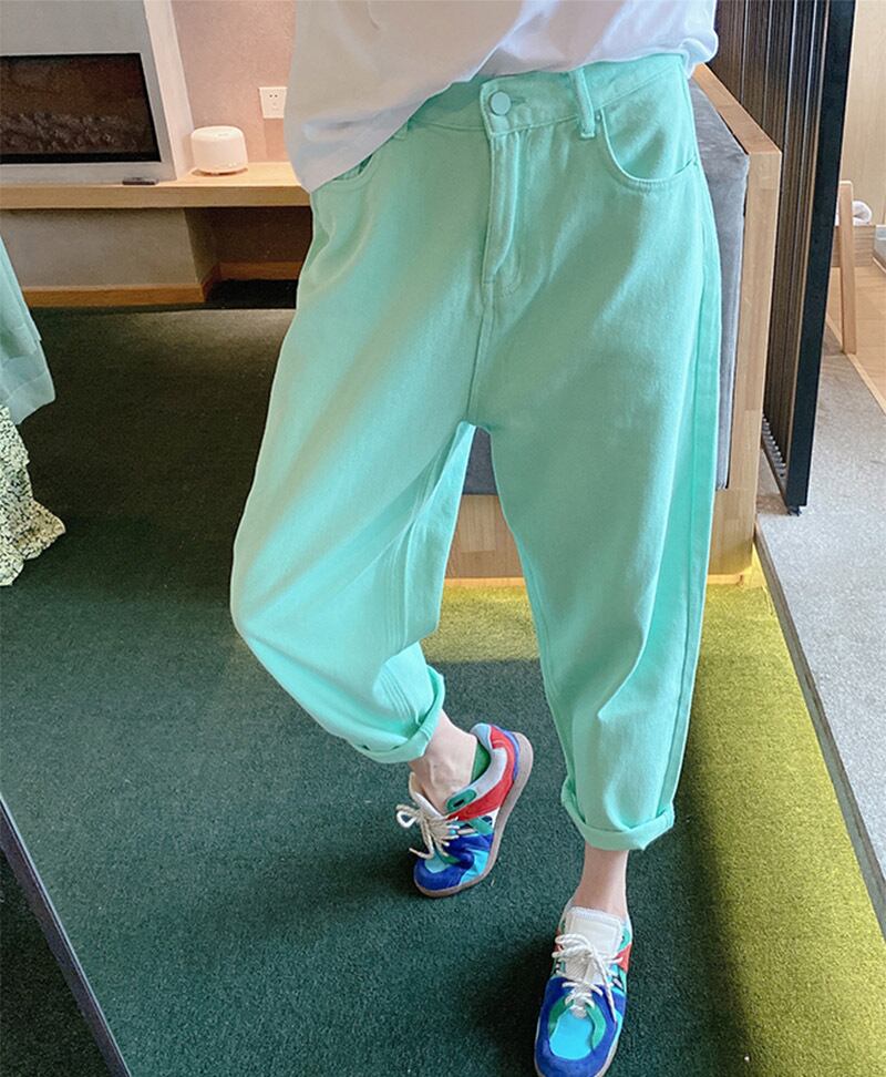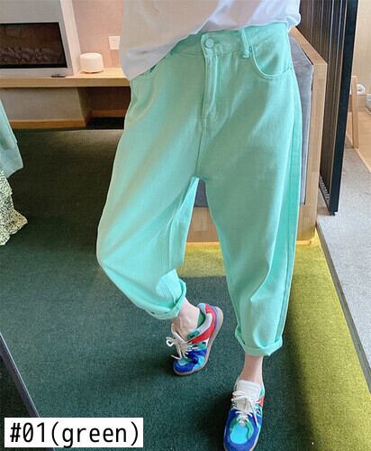 野生の秋ルーズウエストミントグリーンワイドレッグパンツ女性 Pantalones ストリートジーンズポケットハーレム オータム 秋物 ワイドパンツ asa83857483614