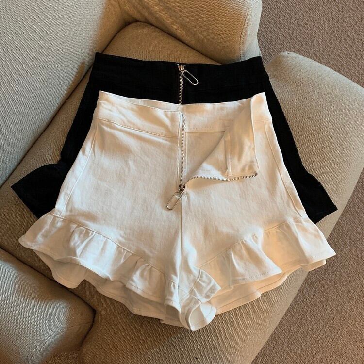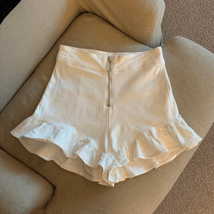 ホットセクシーな白フリル芽デニムショーツ Feminino 女性ウエストスリム A ライン Pantalones Cortos デ春野生のジップショーツ ホワイト スプリング 春物 ブルマー Aライン asa35710564434