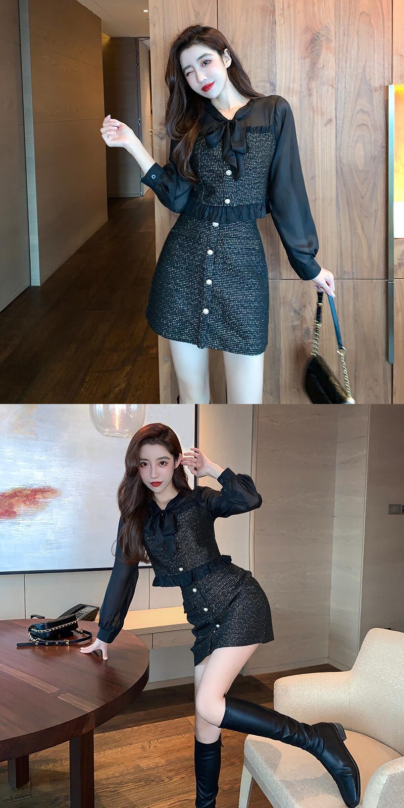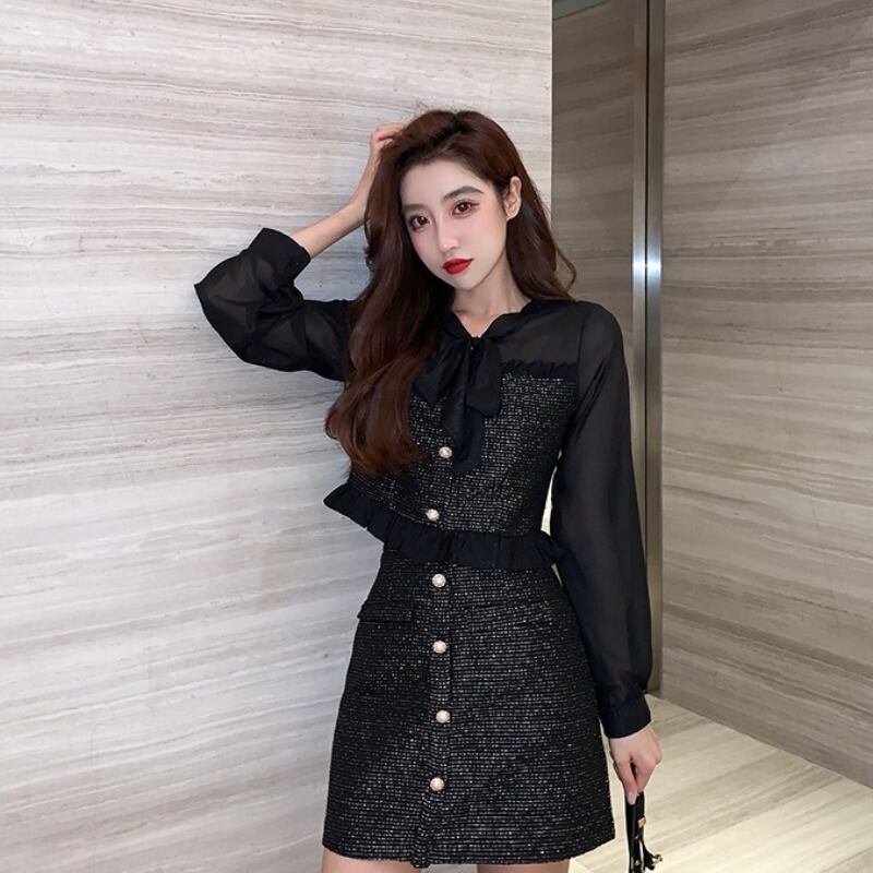 オフィスレディ気質弓長袖トップ白透視シャツ女性 A ラインスカートセット春スリム 2 点セット ロング ホワイト リボン スプリング 春物 Aライン 会社 学校 通勤や通学にも asa80197735616