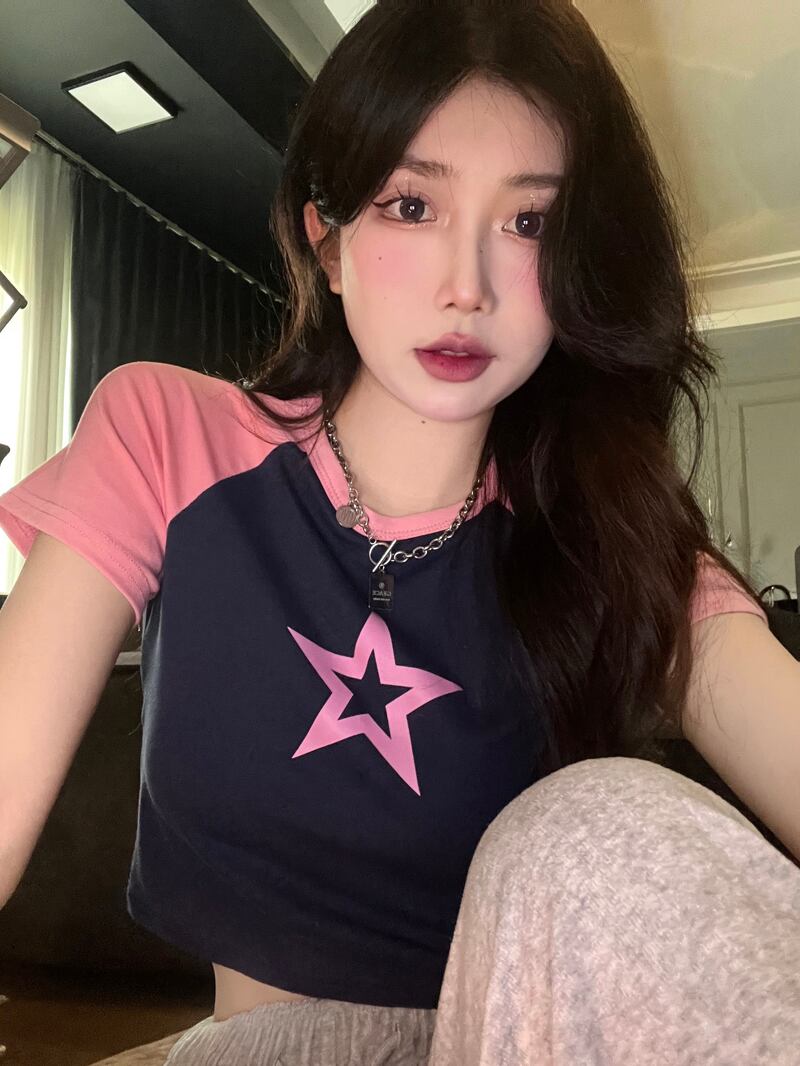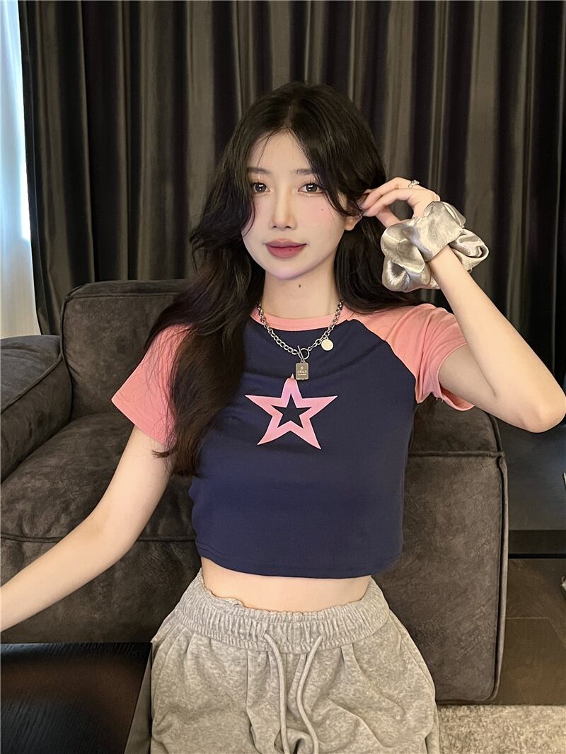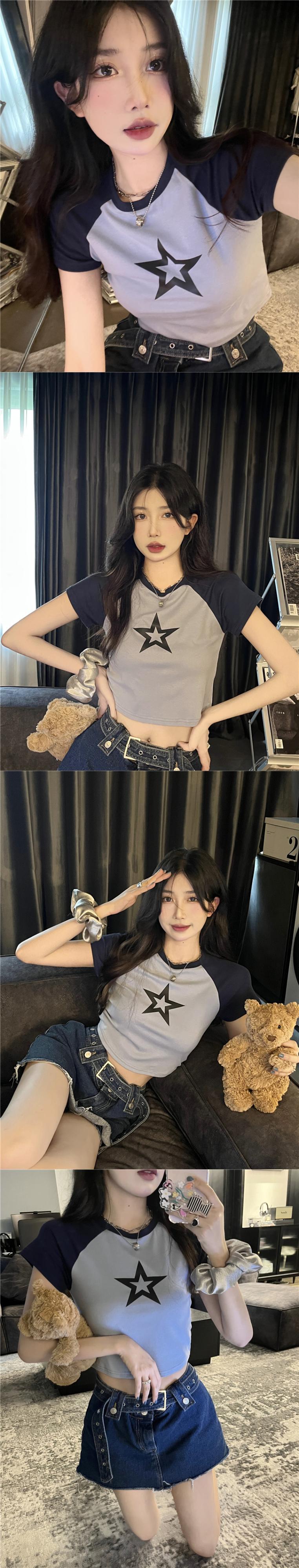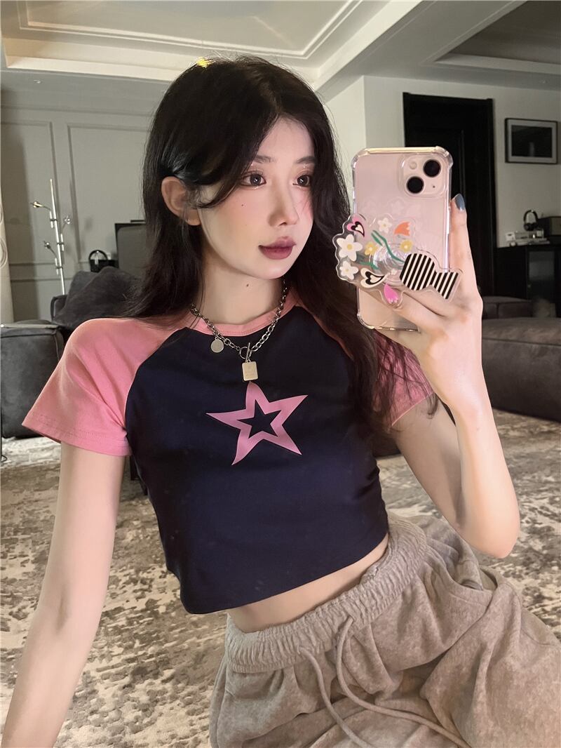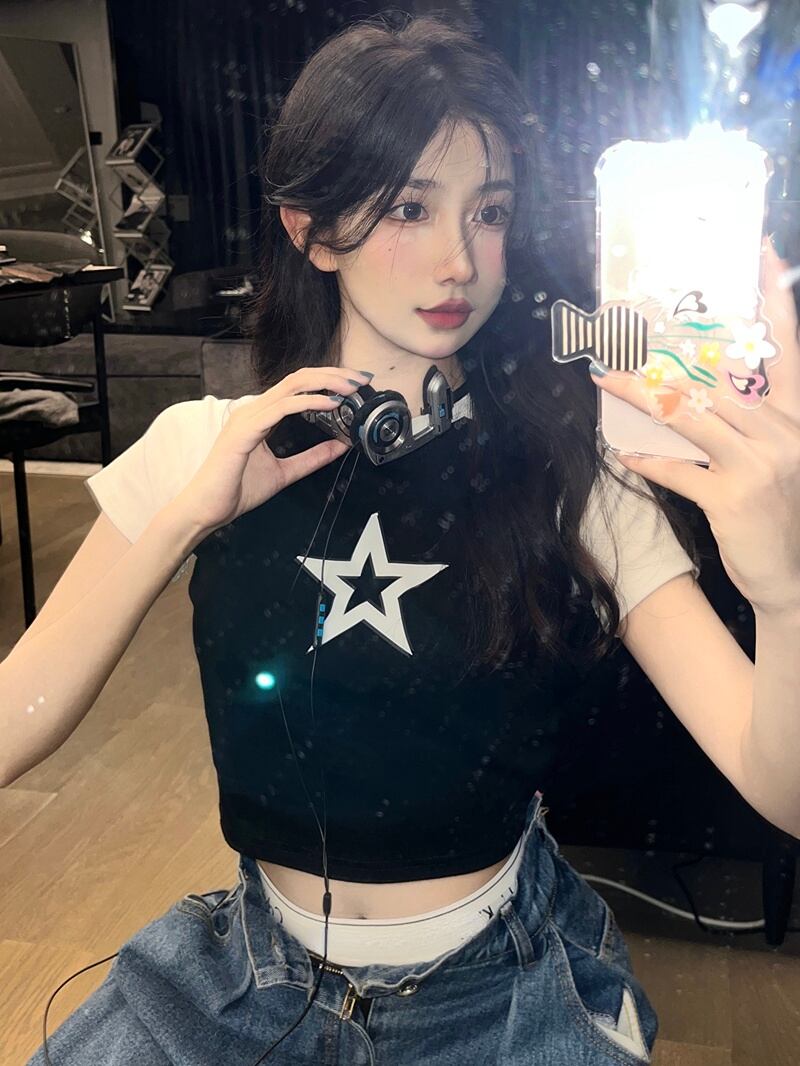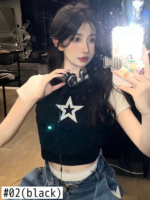 スリムクロップトップス Ropa グラフィック Tシャツグランジ Y2k トップ半袖 Tシャツスタープリント Tシャツの女性の夏 ショート ハーフスリーブ サマー 夏物 asa31917165911