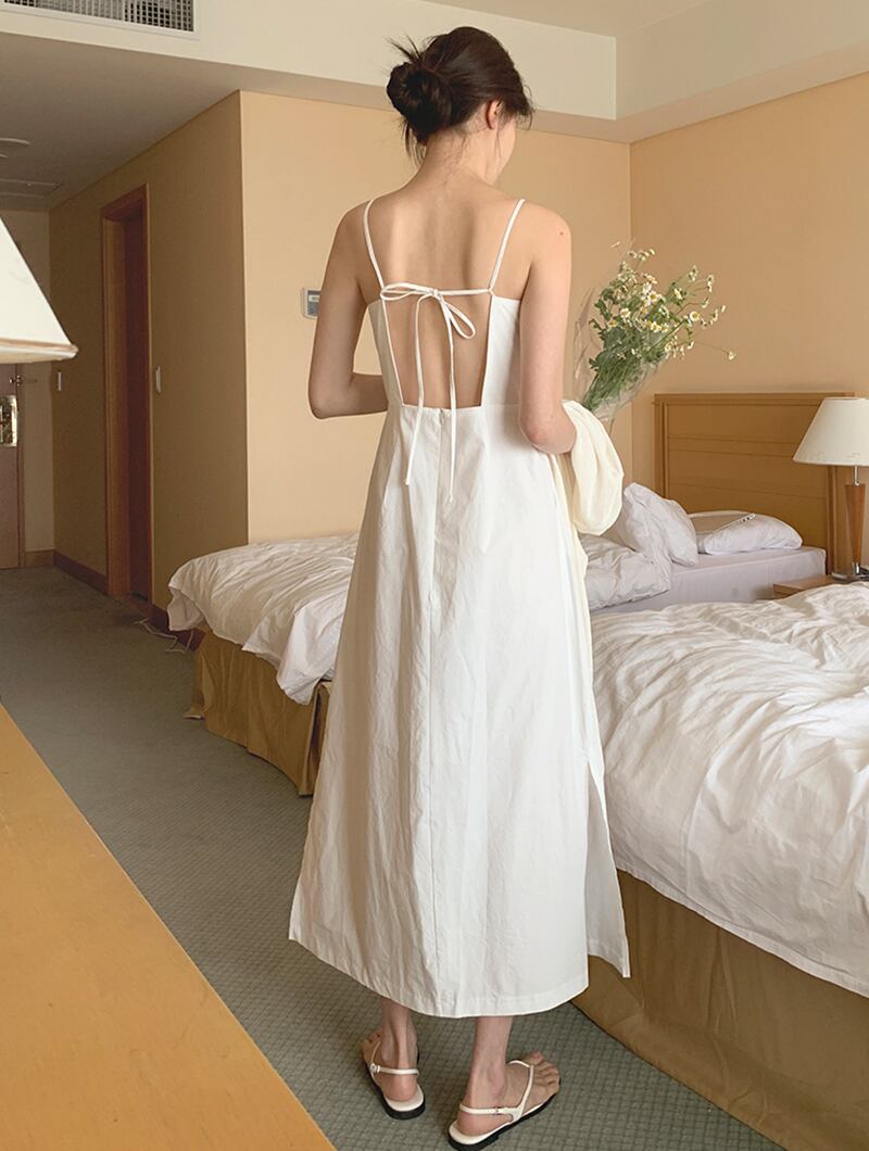 ホワイトサスペンダー背中の開いたドレス Vestidos セクシーな野生のミニマリズム Vestidos ストラップ大スイングレースアップ A ライン緩い Aライン asa62838346280