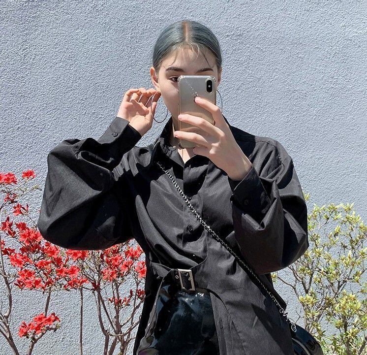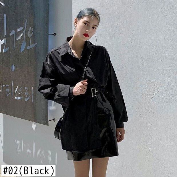 ラペル シングルブレスト ベルト ブルー イレギュラー シャツ ルーズ ワイルド OL ワークスタイル ブラウス パフトップ ブラック ハーネス asa54510651204