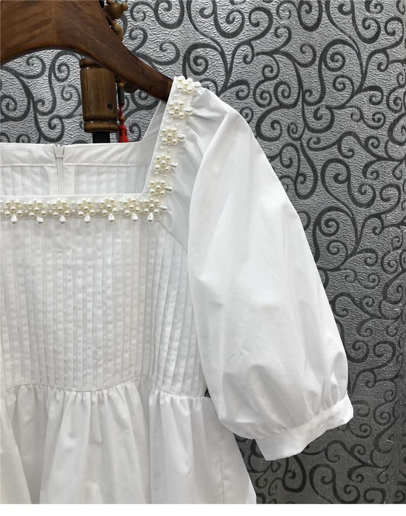 パールスクエアカラーシャツブラウス女性のセクシーなクロップトッププリーツ Blusa バックジッパーシャツ無地パフ半袖 ショート ハーフスリーブ 真珠 ソリッドカラー スクウェア asa49452522791