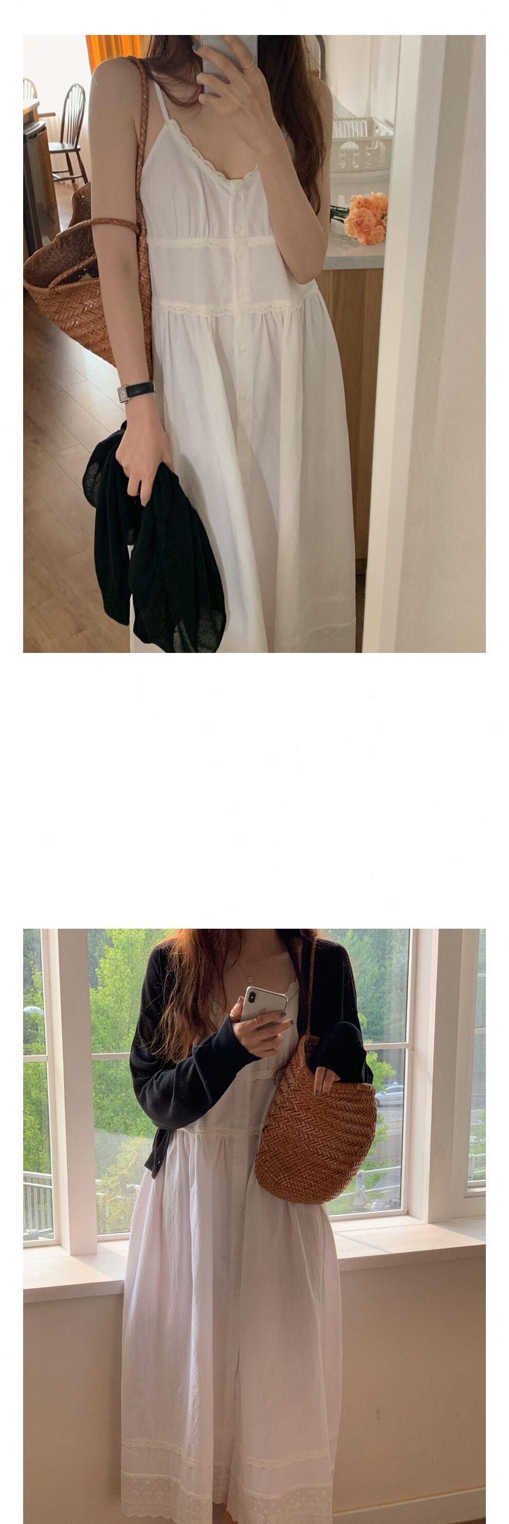 A ライン ホワイト ノースリーブ サスペンダー ドレス女性ミディ Vestidos デ緩い V ネック レース ベスト シャツ シングル ブレスト裾 Vネック asa85246144410