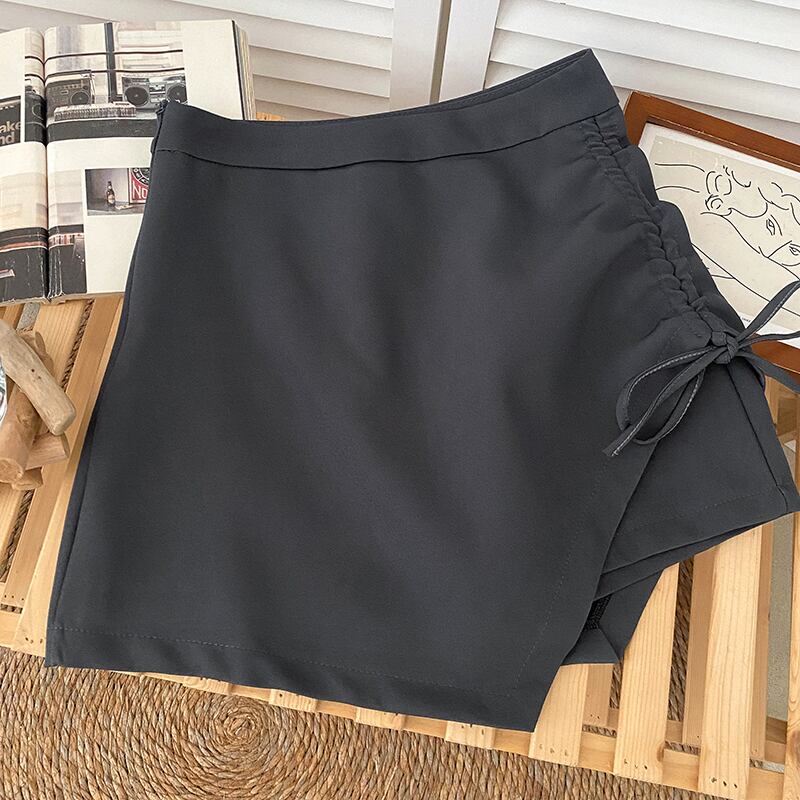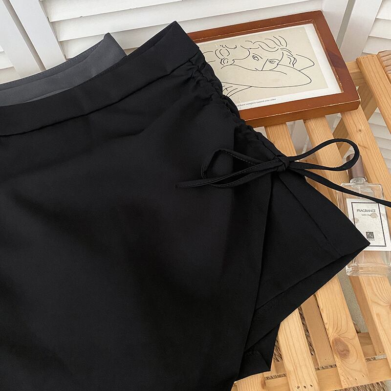 ひだ巾着不規則なウエストスリム黒スカートショート A ラインラップヒップセクシーな野生の女性スーツペチコート段 Faldas レトロ春 ブラック スプリング 春物 Aライン asa49997411962