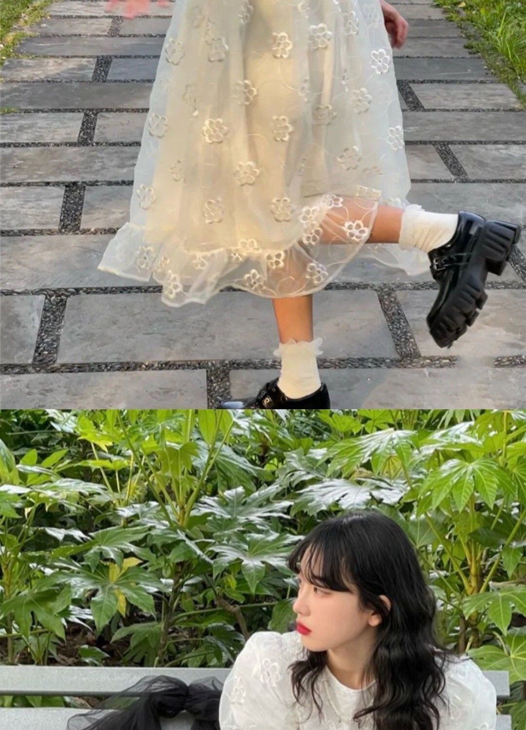 Vestidos デ妖精フラワー メッシュ ウエスト スリム パフ スリーブ ラウンド ネック ホワイト ドレス女性ショート ドール ケーキ フリル Oネック フラワーデザイン asa18333414176