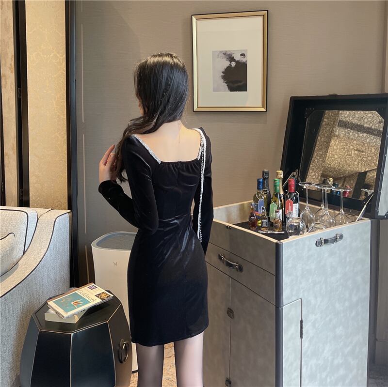 セクシーな V ネック長袖黒のラインストーンドレスミニスリムラップヒップイブニング Vestidos ショートウエディングパーティーベルベットの女性 ロング ブラック Vネック asa9457471848