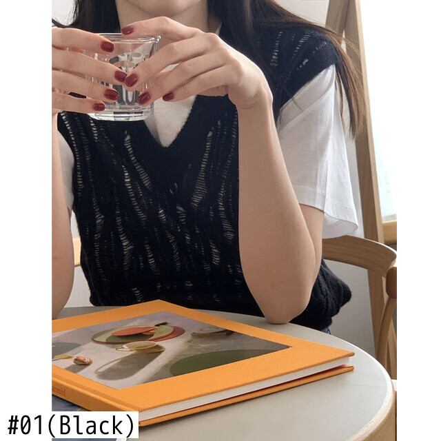春固体 V ネック中空アウト ニット ベスト トップス Chaleco Roupas s 女性黒チョッキ ベスト ブラック スプリング 春物 Vネック ソリッドカラー asa14181501704
