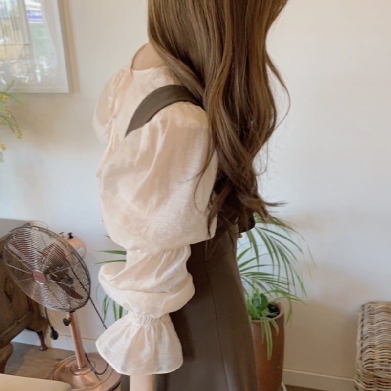 女性ブラウスフレアスリーブ透視シフォンシャツ女性フル s 春トップス女性シャツ薄い気質 スプリング 春物 asa94545651234