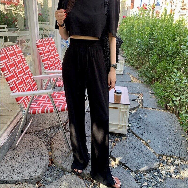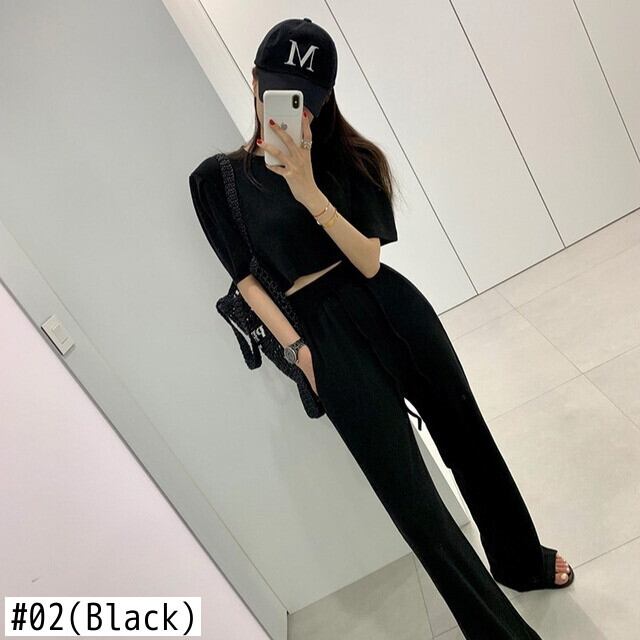 半袖 Tシャツ Oネック トップス ニット ワイドパンツ 2点セット 春夏 Tシャツ Tシャツ スウェットパンツ ショート ハーフスリーブ スプリング 春物 サマー 夏物 ワイドレッグ asa58336837860