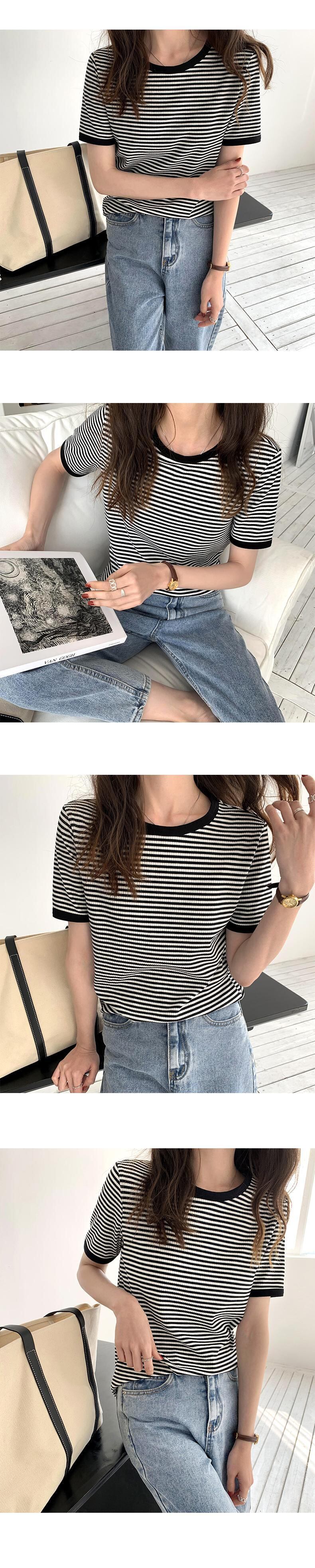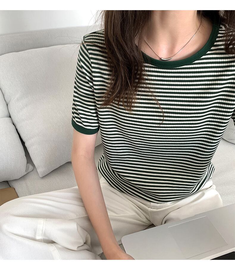 O ネック半袖ストライプ Tシャツ女性の夏のコントラストトップスワイルド Tシャツコットン Y2k シャツ ショート ハーフスリーブ サマー 夏物 Oネック asa64864411696