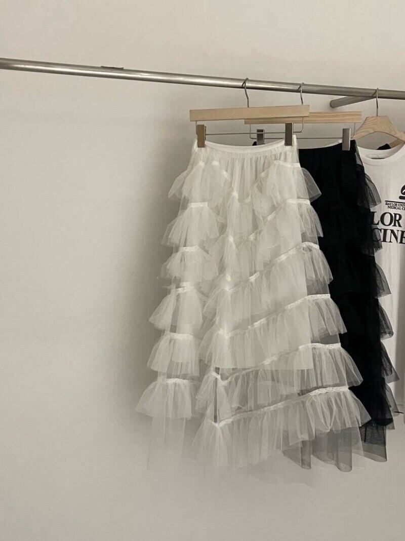 ペチコート faldas largas 妖精レイヤード ガーゼ レースふくらん白ケーキ スカート女性ミディ フリル ブラック メッシュ春 ホワイト レッド スプリング 春物 asa93565466218