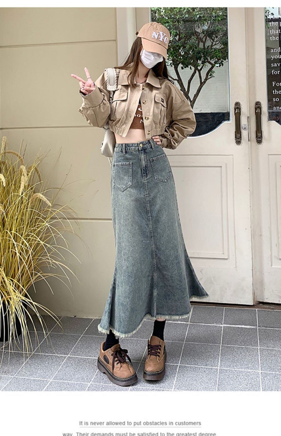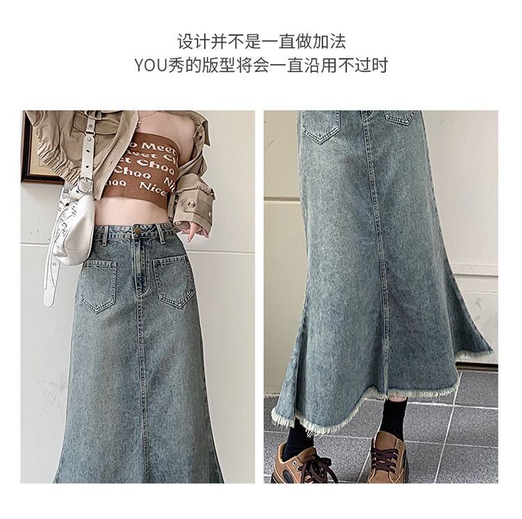 アメリカのウエストラップヒップデニムスカート女性スリム A ラインマーメイドジーンズ Y2k スカートミニ段 Faldas モーダペチコートロング Aライン asa68231765177