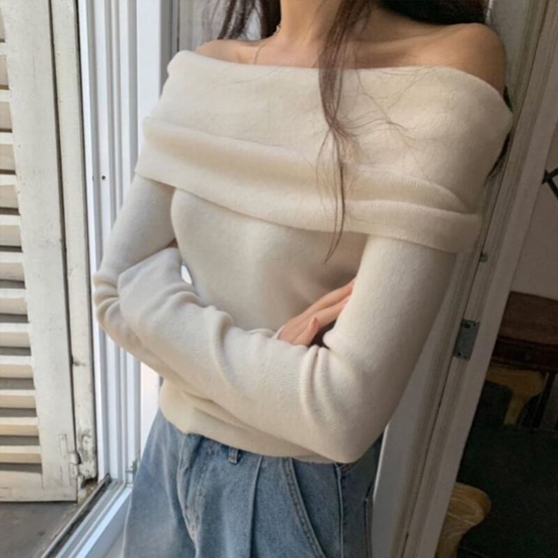 甘い女性スラッシュネックオフショルダーピンクセーターセータープルオーバー長袖トップスリムニットジャンパーセーター女性 ロング 大人ガーリー スウィート キュート カジュアル asa61814005335
